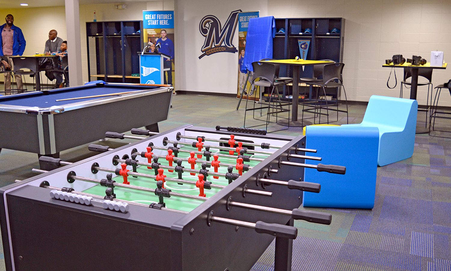 Multipurpose court: The project features a multipurpose court that can be used for playing sports like basketball, badminton, and tennis.